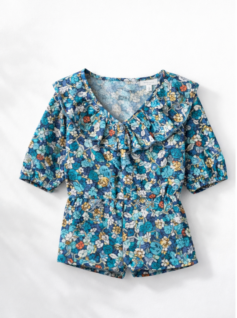 Adoptez ce combishort léger et coloré, parfait pour les bébés filles de 3 mois. Son imprimé floral éclatant, ses manches bouffantes et son lien décoratif lui donnent une allure estivale pleine de fraîcheur. Confortable et pratique, il offre une liberté de mouvement idéale pour les journées chaudes.