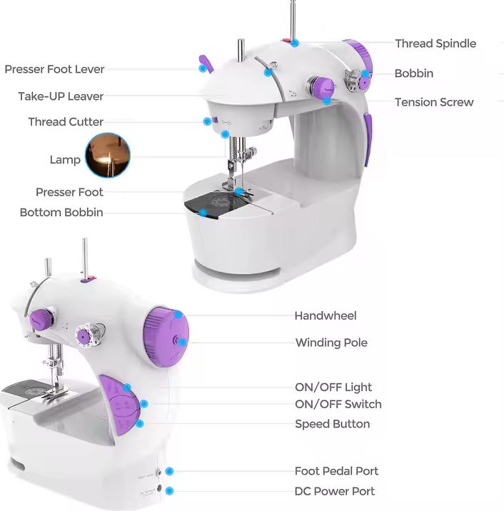 • La mini machine à coudre portable, au design moderne et aux dimensions compactes de 20x12x19 cm, est idéale pour les créateurs de mode et les utilisateurs en déplacement.